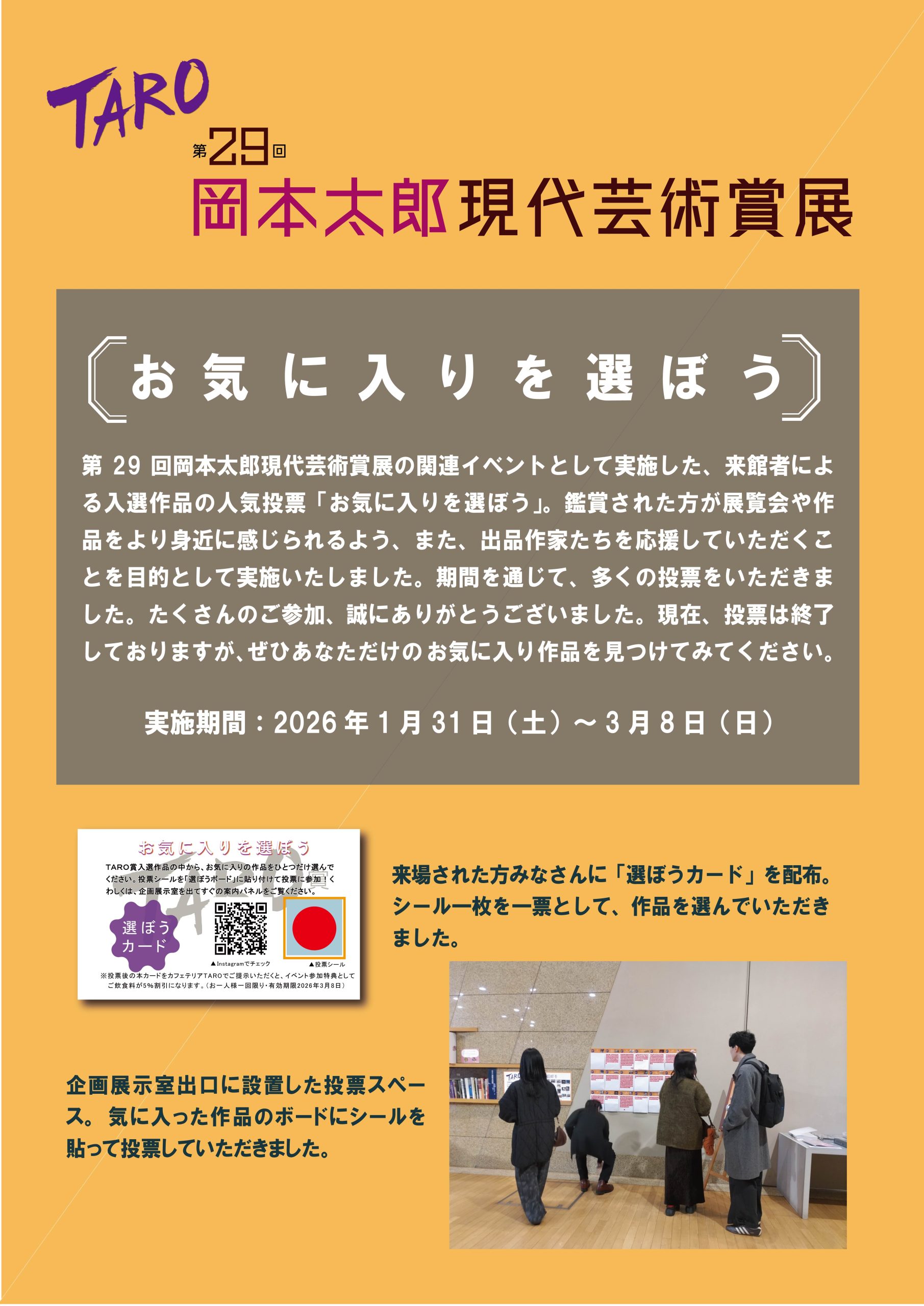 第29回TARO賞入選作品の中から、ご来館の皆さまにお気に入り作品を投票していただきます。
